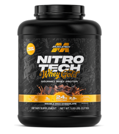 a proteína de suero gourmet Nitro-Tech Whey Gold proporciona 24 g de proteína de suero de alta calidad para favorecer el desarrollo y la recuperación muscular, todo ello con un sabor ultrasuave diseñado para atletas que no quieren sacrificar el sabor por el rendimiento.